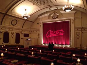 Edwardian picture house now with sofas, screening mainstream and art house films, plus bar and food. But I must explain to you how all this mistaken idea of denouncing pleasure